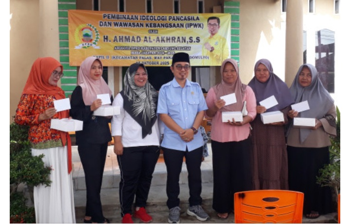 KABUPATEN LAMPUNG SELATAN – H.Ahmad Al-Akhran, sebagai anggota Dewan Perwakilan Rakyat Daerah (DPRD) Kabupaten Lampung Selatan dari Daerah Pemilihan (Dapil) II yakni Palas, Sidomulyo, Way Panji, mengadakan kegiatan Sosialisasi Pembinaan Ideologi Pancasila dan Wawasan Kebangsaan (IPWK) di Dusun 1 Rt 2 Desa Sukaraja, Kecamatan Palas Kabupaten Lampung Selatan (Lamsel).