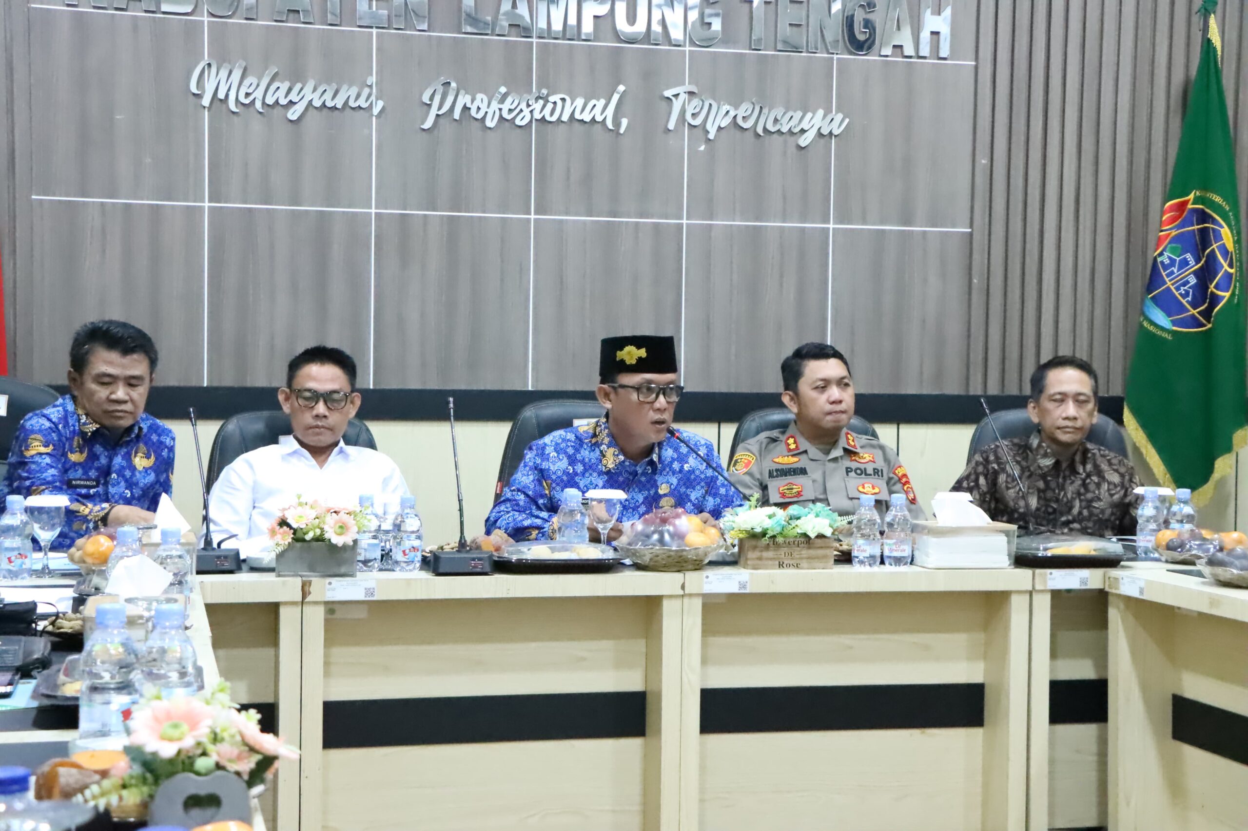 Rapat ini dihadiri oleh Forum Koordinasi Pimpinan Daerah (Forkopimda), Kepala Kantor Pertanahan Lampung Tengah, Nurwanda, Sekretaris Daerah Lampung Tengah, Welly Adi Wantra, para asisten, staf ahli bupati, serta kepala perangkat daerah terkait.