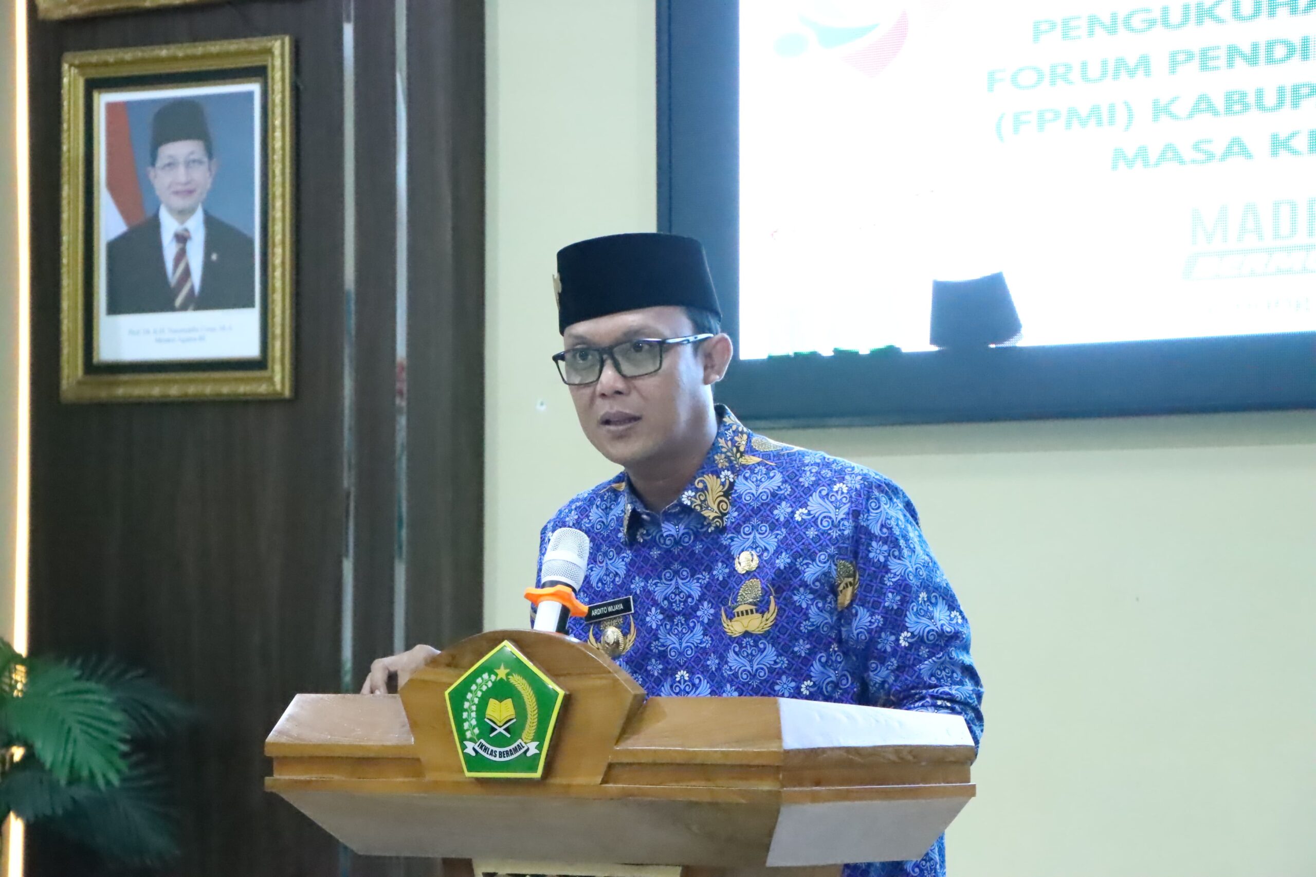 Bupati Lampung Tengah, Ardito Wijaya, menghadiri pelantikan pengurus Forum Pendidik Madrasah Inklusi (FPMI) Kabupaten Lampung Tengah yang berlangsung di Aula Kantor Kementerian Agama (Kemenag) Lampung Tengah, Senin (1/10/2025).