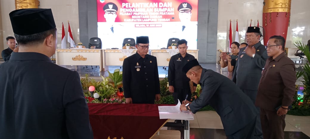 Acara pelantikan dan pengambilan sumpah/janji Jabatan Pimpinan Tinggi Pratama (JPT Pratama) Sekretaris Daerah ini berlangsung khidmat. Turut hadir menyaksikan momen penting ini Staf Ahli Gubernur Lampung, Ganjar Jationo, Wakil Bupati, I Komang Koheri, Ketua TP PKK, Ny. Indria Sudrajat Ardito, Ketua 1 TP PKK, Ny. Ni Ketut Dewi Nadi Komang, Pj. Sekda, Rusmadi, Para Staf Ahli Bupati, Asisten, Kepala Perangkat Daerah dan Camat di lingkungan Pemkab Lampung Tengah.