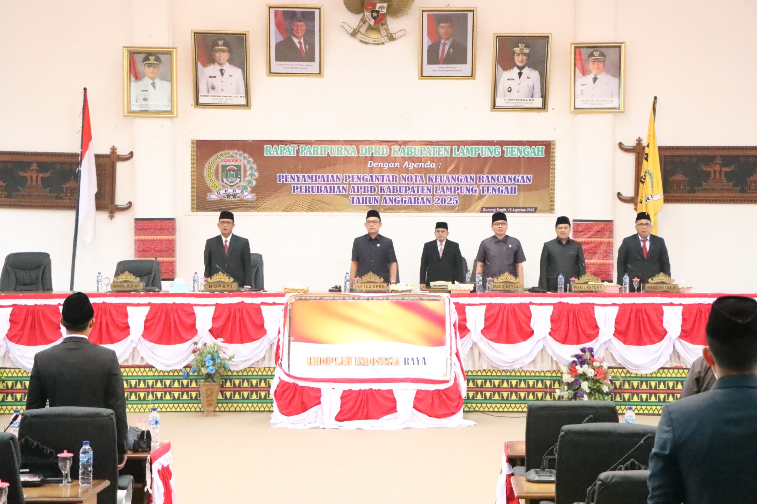 Bupati Lampung Tengah, Ardito Wijaya, menghadiri Rapat Paripurna DPRD Kabupaten Lampung Tengah dalam rangka penyampaian pengantar Nota Keuangan Rancangan Perubahan Anggaran Pendapatan dan Belanja Daerah (APBD) Tahun Anggaran 2025. Rapat tersebut berlangsung di Ruang Rapat Paripurna DPRD Kabupaten Lampung Tengah pada Jumat (15/8/2025).