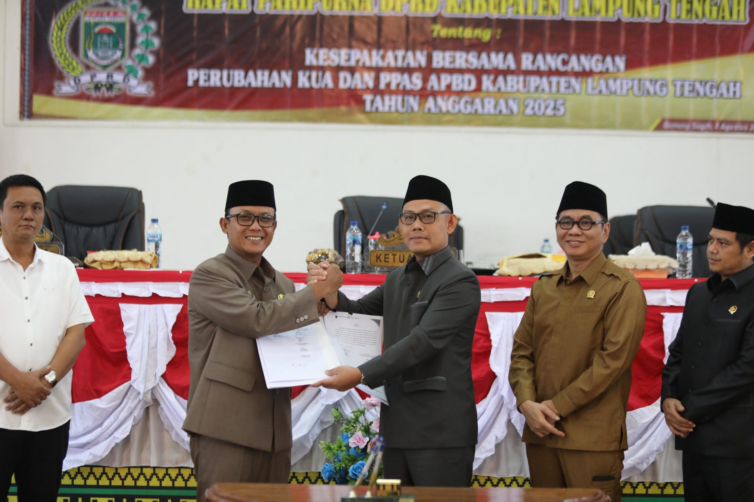 Bupati Lampung Tengah, Ardito Wijaya, menghadiri Rapat Paripurna DPRD Kabupaten Lampung Tengah dalam rangka Kesepakatan Bersama terhadap Rancangan Perubahan Kebijakan Umum Anggaran (KUA) dan Prioritas dan Plafon Anggaran Sementara (PPAS) APBD Tahun Anggaran 2025. Rapat paripurna tersebut berlangsung di Ruang Sidang DPRD Kabupaten Lampung Tengah, Senin (4/8/2025).