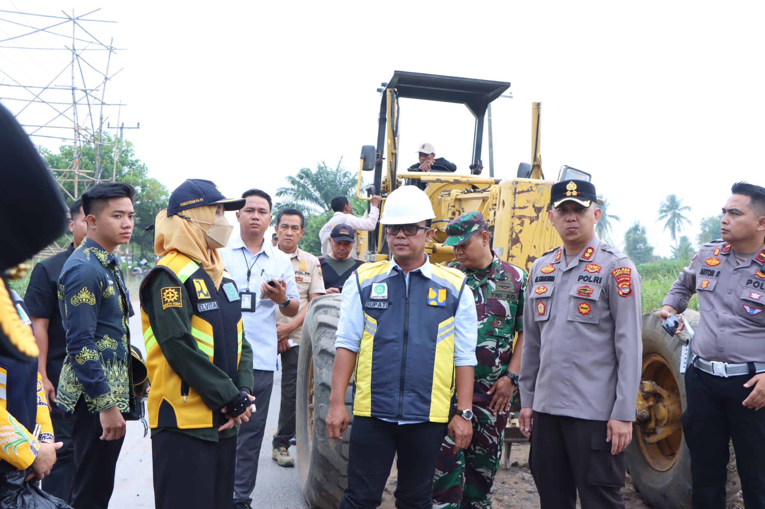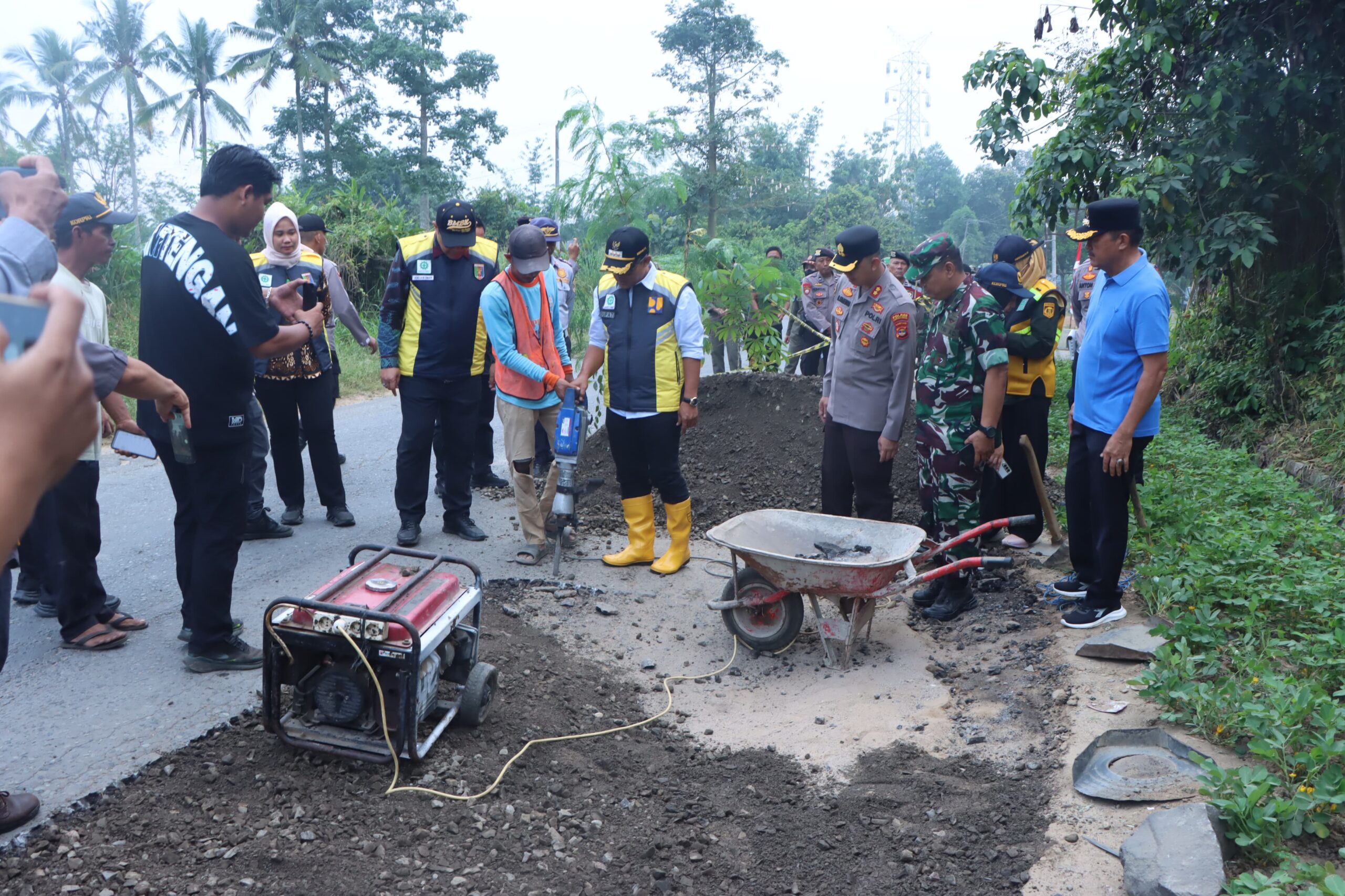 Bupati Lampung Tengah, Ardito Wijaya, bersama Kapolres Lampung Tengah AKBP Alsyahendra, perwakilan Kodim 0411/KM, serta jajaran Bina Marga dan Bina Konstruksi Provinsi Lampung dan Bina Marga Bina Konstruksi Kabupaten Lampung Tengah, melakukan peninjauan sekaligus perbaikan pada ruas Jalan Gunung Sugih – Kota Gajah, Kamis (28/8/2025).