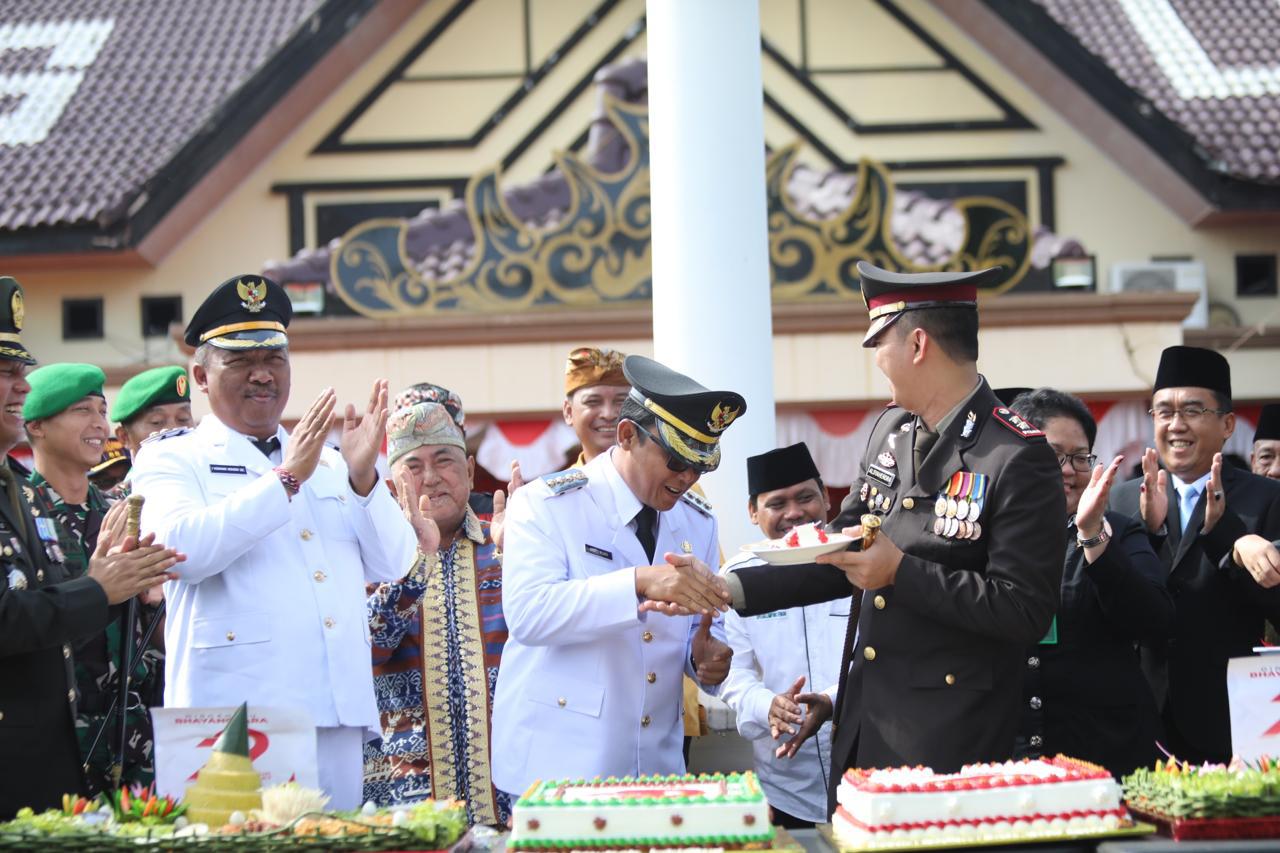 Bupati Ardito menyampaikan melalui momen tasyakuran ini, mari kita perkuat komitmen kita sebagai insan Bhayangkara yang Presisi ( prediktif, responsibilitas, dan transparansi berkeadilan). Di tengah tantangan yang terus berubah, Polri dituntut untuk hadir dengan pendekatan yang lebih humanis, transparan, dan bertanggung jawab.