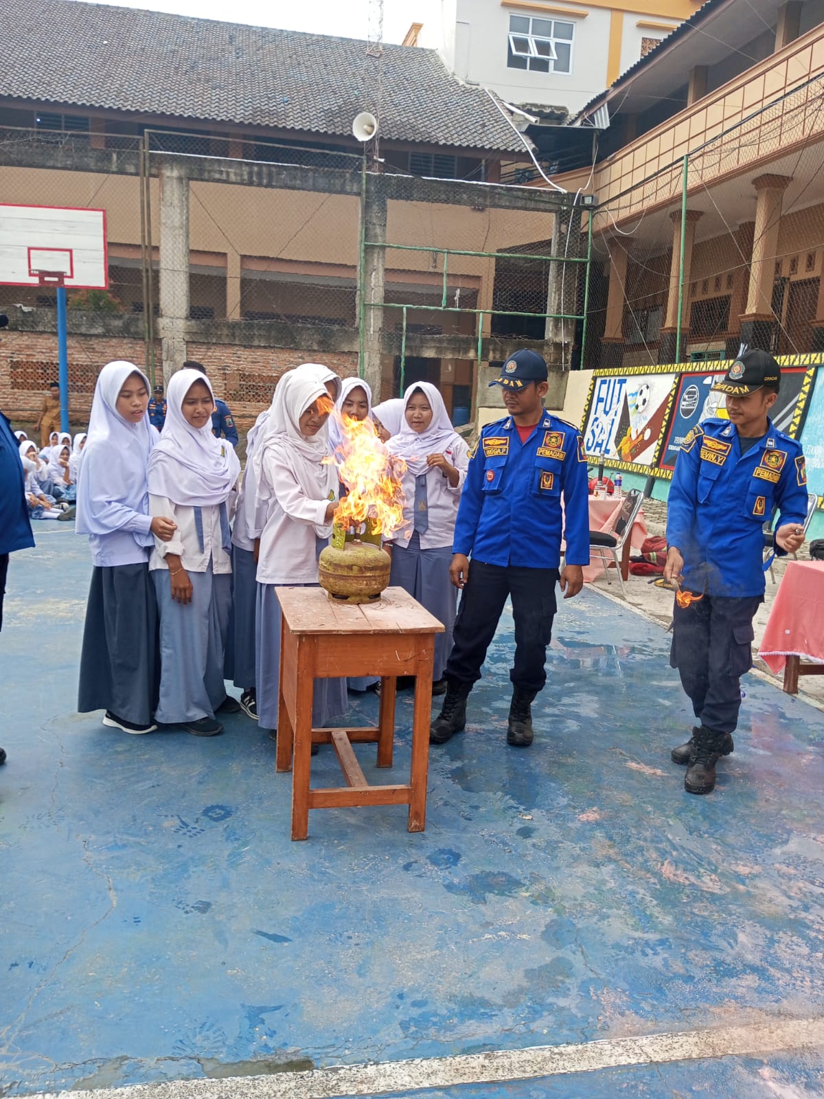 “Mengatasi kebakaran yang disebabkan oleh kebocoran tabung gas, serta bagaimana cara penggunaan tabung APAR,” tutur Sefri.