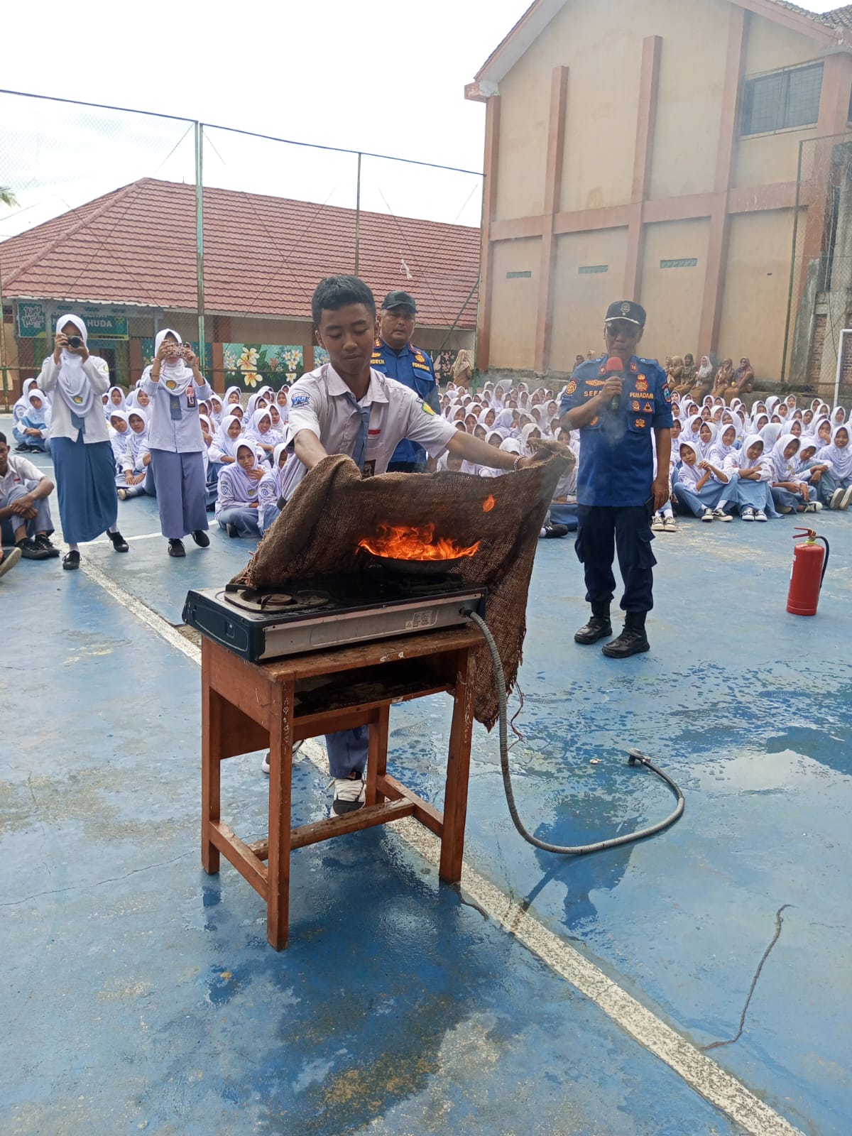 Setelah memberikan penjelasan tentang pencegahan, penyelamatan dan pemadaman kebakaran.