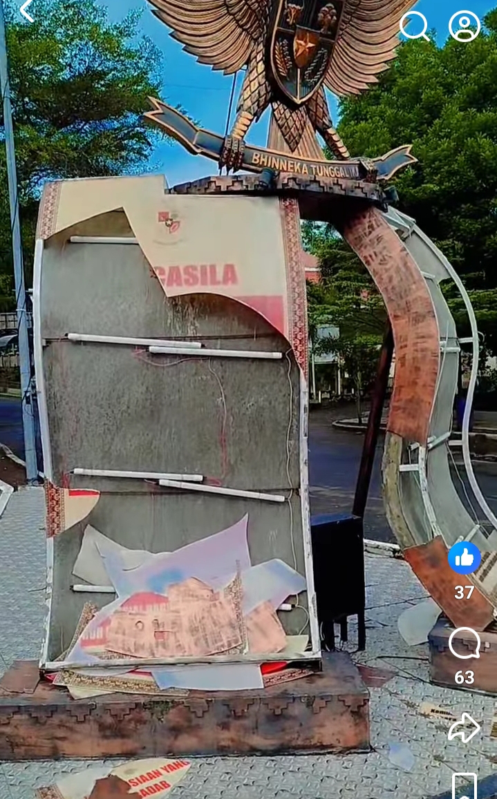 KABUPATEN LAMPUNG SELATAN – Berdasarkan video yang beredar di media sosial (Medsos) pada Akun FB yang di posting oleh atas nama Rudi Kalianda, pada Sabtu 25 April 2026 dengan berdurasi sekitar 2 menit yang menunjukan Ikon Kalianda Lampung Selatan pada Tugu Pancasila yang sudah dirusak berkeping-keping oleh yang tidak bertanggungjawab.