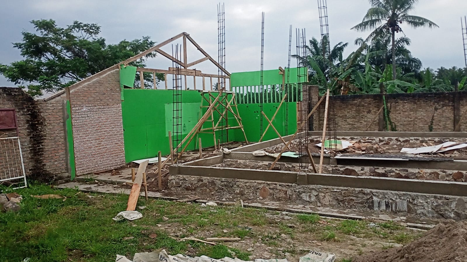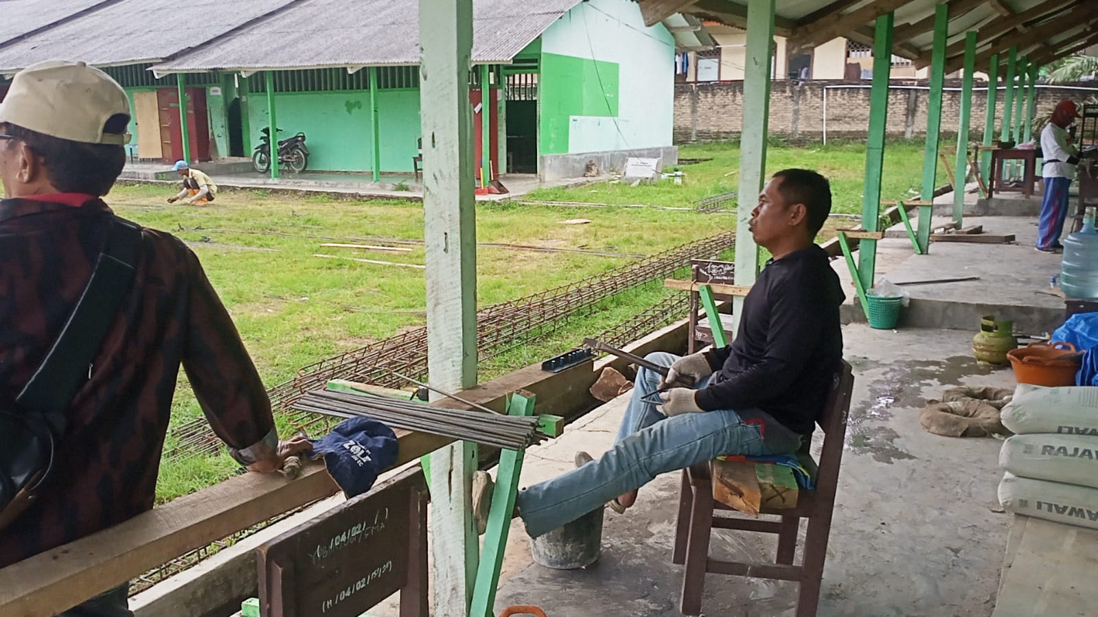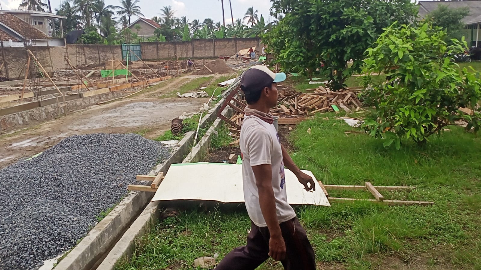 Pekerjaan proyek rehabilitasi ruang kelas (4 Ruang) Pembangunan Ruang Laboratorium IPA (1 RUANG) dan Pembangunan Ruang PERPUSTAKAAN (1 RUANG) Pondok Pesantren Babul Hikmah. Yang dimana terletak lokasi tepatnya di Desa Kedaton, Kecamatan Kalianfa Kabupaten Lampung Selatan (Lamsel) juga menyalahi aturan dengan tidak menggunakan (APD).