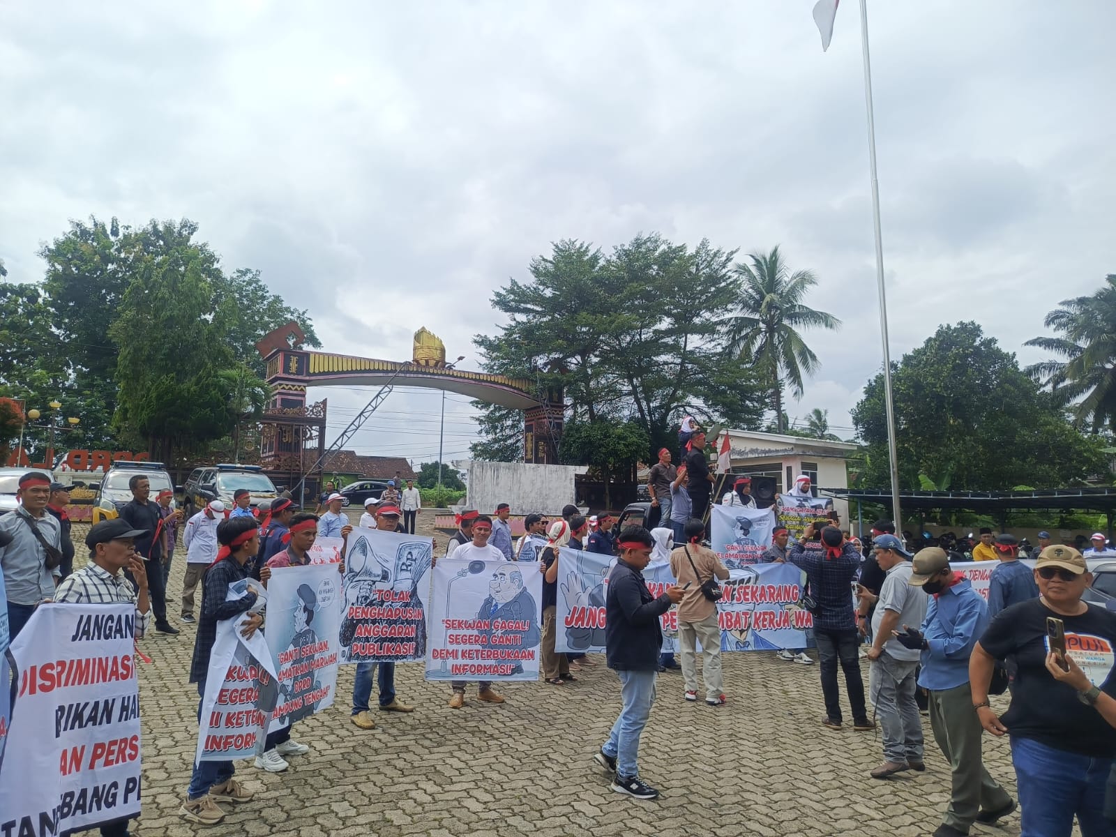 “Kami sangat kecewa. Lima puluh anggota DPRD ini digaji dari uang rakyat, tapi tidak satu pun berani keluar menemui kami. Kalau rumah rakyat menutup pintunya bagi rakyat, lalu ke mana lagi kami harus mengadu?” tegas Koordinator Aksi FWLM Lampung Tengah.