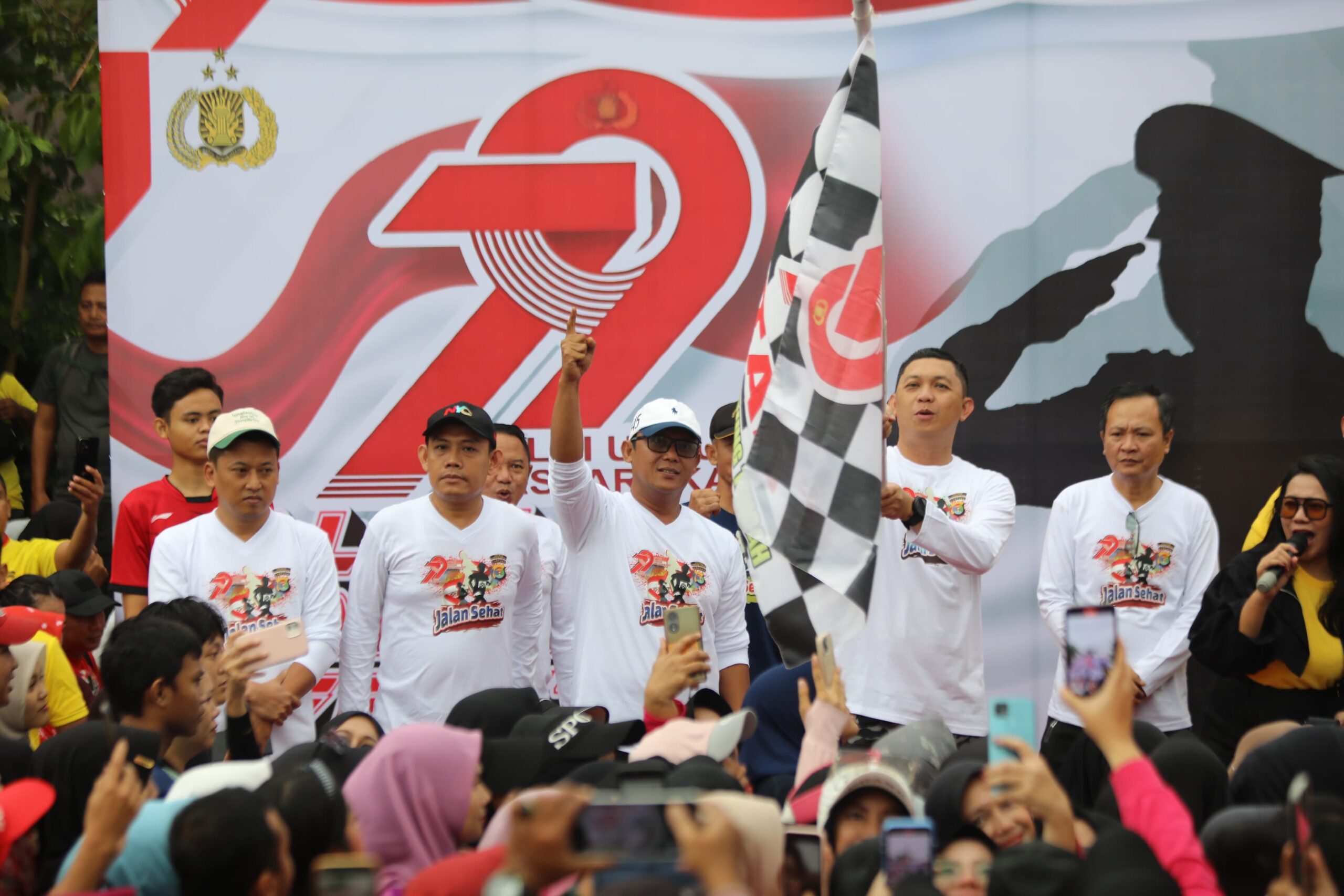 Beritapaktual.com- Bupati Ardito Wijaya menghadiri Jalan Sehat Bersama Masyarakat dalam rangka Hari Bhayangkara ke-79, yang dilaksanakan oleh Polres Lampung Tengah, bertempat di Taman Tugu Canang, Gunung Sugih. Acara ini disambut antusias dan berlangsung meriah, Minggu (29/6/2025).