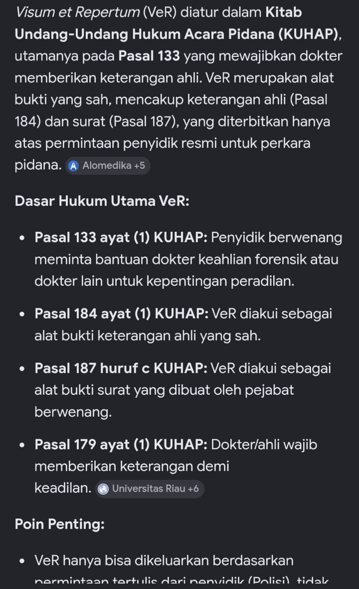 Walau pun Ketua Komisi IV DPRD Lamsel, semestinya terlebih dahulu mempelajari Dasar Hukum utama mengenai Visum et Repertum (hasil visum rumah sakit) di Indonesia diatur dalam Kitaba Undang-Undang Hukum Acara Pidana (KUHAP) dan mencerna KUHAP (UU Nomor 8 Tahun 1981: Menyebutkan bahwa penyidik berwenang, mengajukan permintaan keterangan ahli kepada ahli kedokteran kehakiman atau dokter untuk kepentingan peradilan dalam kasus korban luka, keracunan, atau kematian yang diduga tindak pidana.