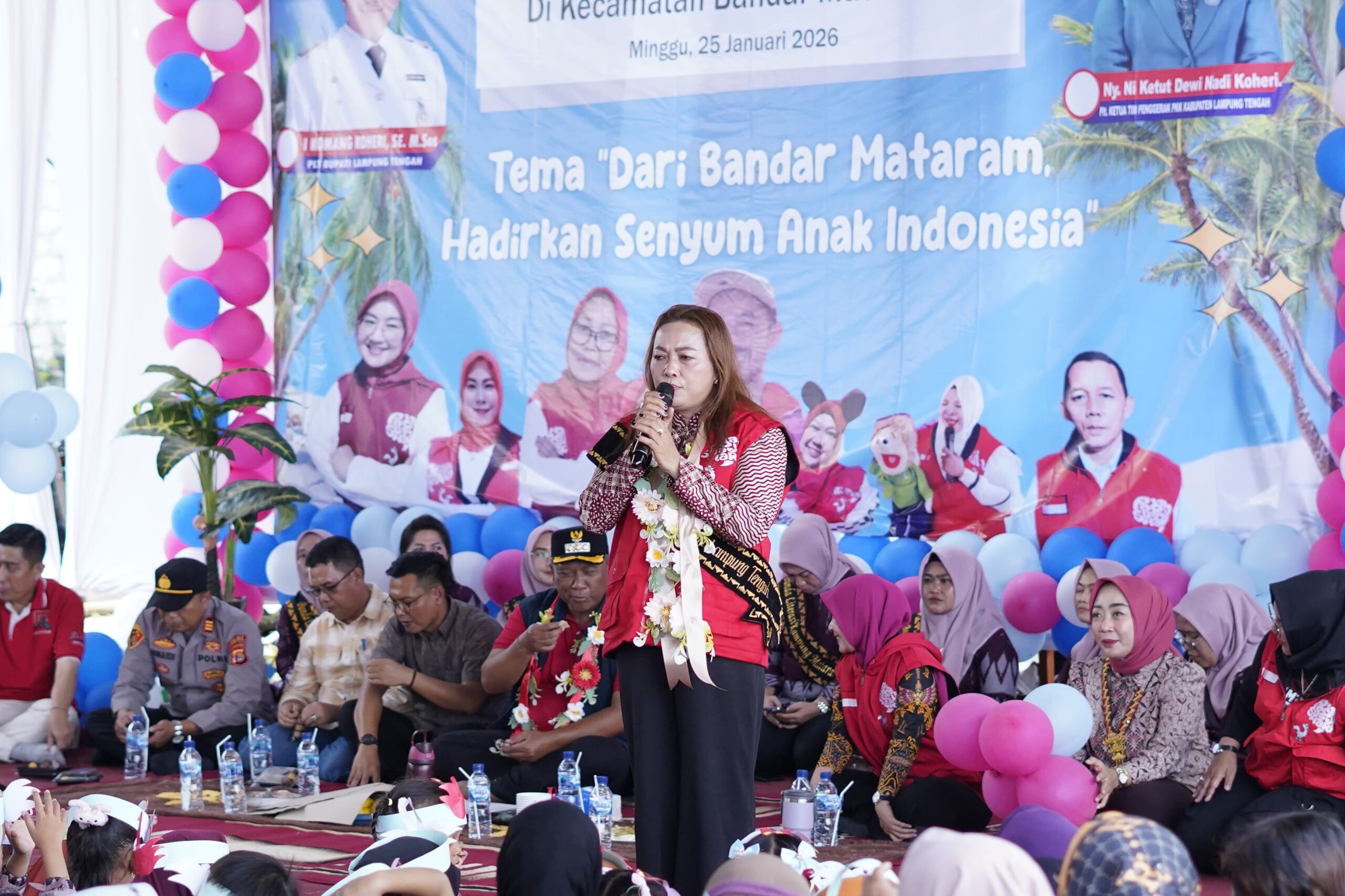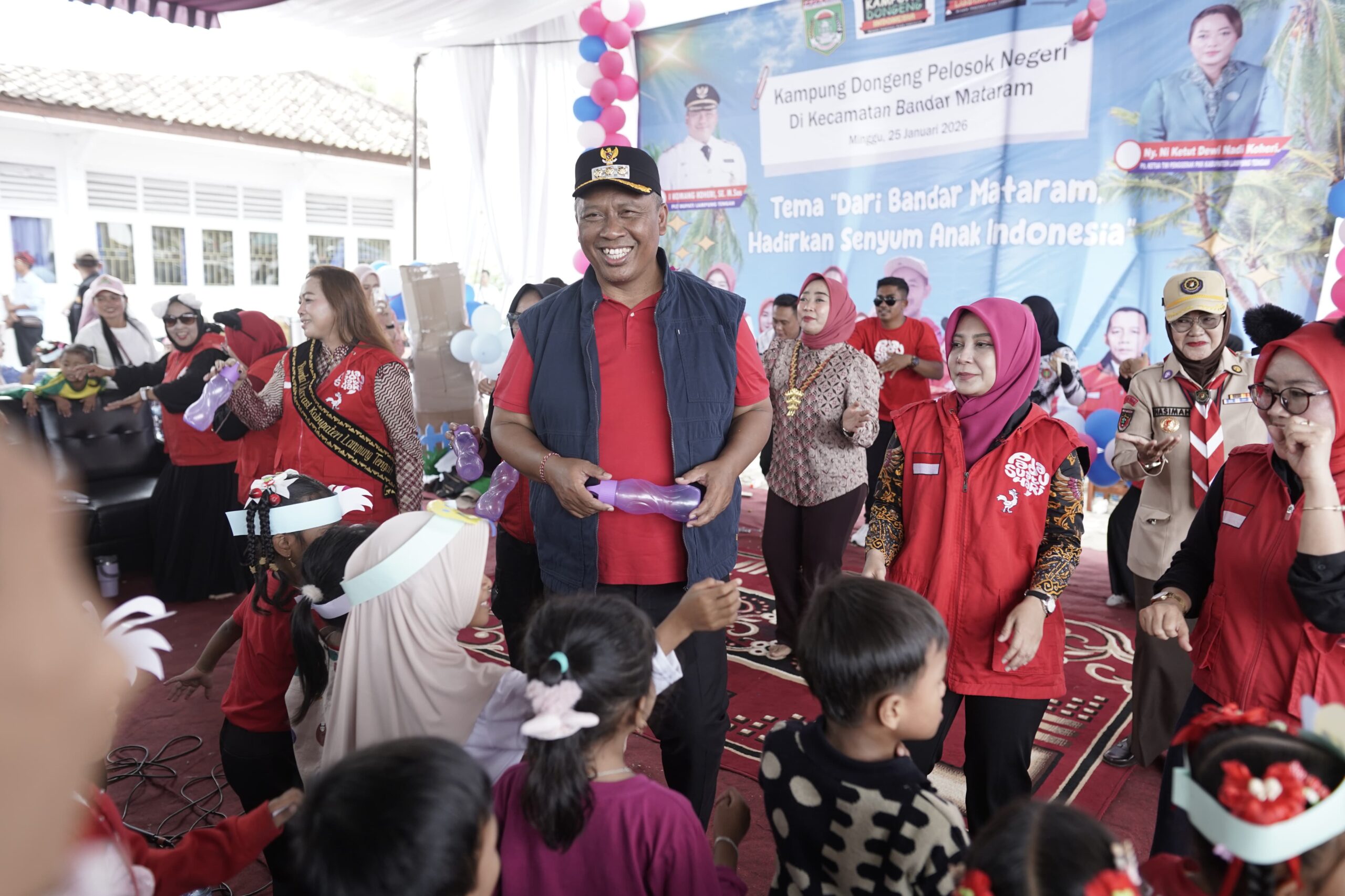 Pelaksana Tugas (Plt) Bupati Kabupaten Lampung Tengah I Komang Koheri didampingi Pelaksana Tugas (Plt) Ketua TP PKK yang juga Plt Bunda Literasi Kabupaten Lampung Tengah Ni Ketut Dewi Nadi Komang Koheri secara resmi membuka kegiatan Kampung Dongeng Pelosok Negeri yang berlangsung di Kecamatan Bandar Mataram, Minggu (25/01/2026).