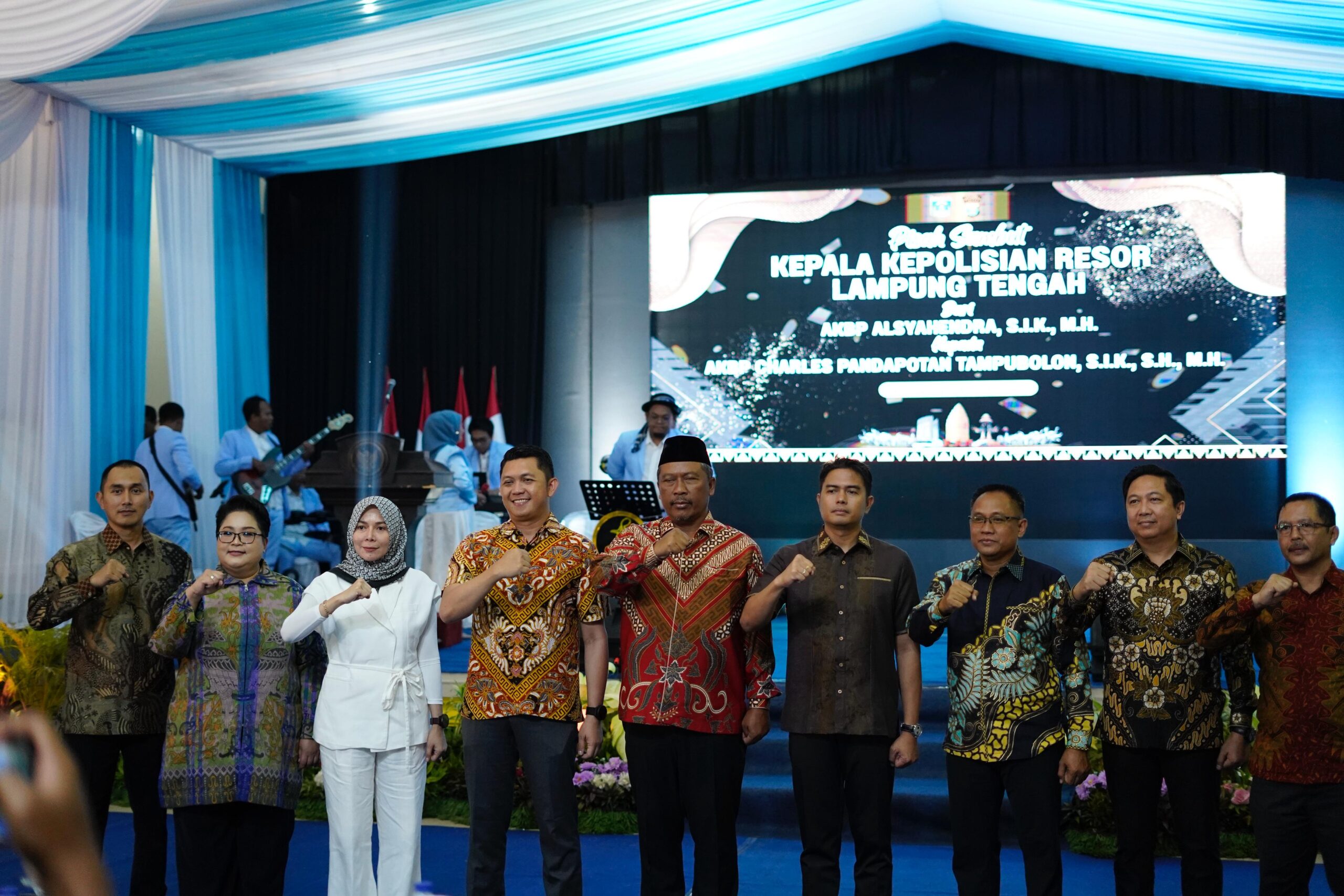 Kepada Kapolres yang baru, AKBP Charles Pendapatan Tampubolon, Plt. Bupati menyampaikan ucapan selamat datang dan selamat bertugas di Kabupaten Lampung Tengah. Ia menegaskan bahwa Pemerintah Kabupaten Lampung Tengah siap membangun sinergi dan kolaborasi yang kuat dengan Polres Lampung Tengah dalam rangka menjaga stabilitas keamanan, penegakan hukum, serta mendukung pembangunan daerah yang berkelanjutan.
