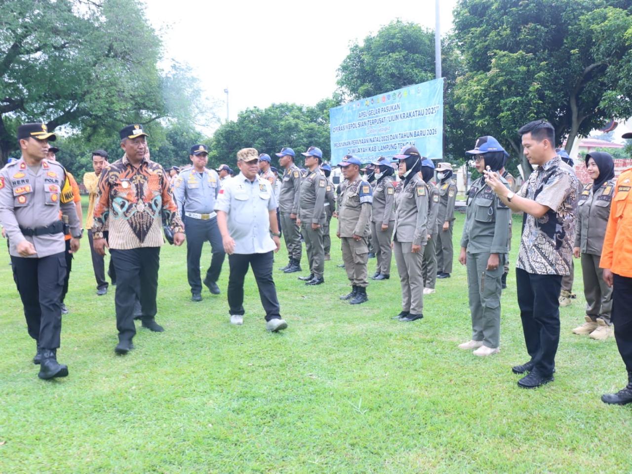 Wakil Bupati Lampung Tengah selaku Pelaksana Tugas (Plt) Bupati, I Komang Koheri, SE, M.Sos, mengikuti Apel Gelar Pasukan Operasi Kepolisian Lilin Krakatau Tahun 2025 dalam rangka pengamanan dan pelayanan perayaan Natal Tahun 2025 dan Tahun Baru 2026 di wilayah Kabupaten Lampung Tengah. Kegiatan tersebut digelar di halaman Polres Lampung Tengah, Jumat (19/12/2025).