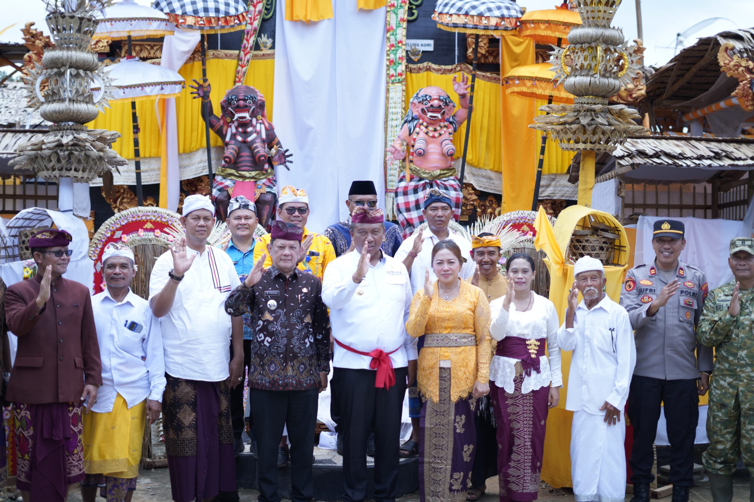 Pelaksana Tugas (Plt) Bupati Kabupaten Lampung Tengah I Komang Koheri menghadiri Upacara Dewa Yadnya Karya Ngenteg Linggih Pura Dalem Giri Buana dalam rangka peresmian Pura Dalem Giri Buana yang berlangsung di Kampung Restu Buana, Kecamatan Rumbia, Jumat (27/03/2026).