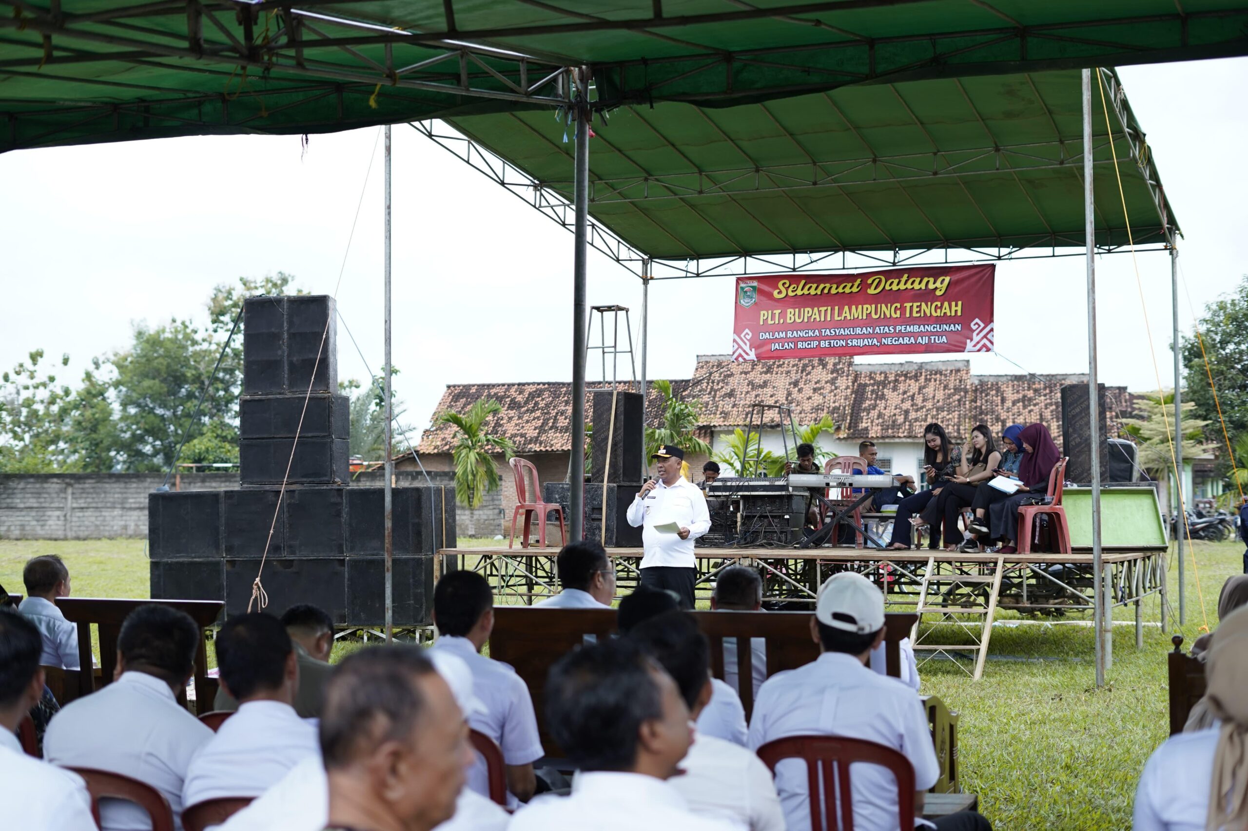 Dalam sambutannya, Kepala Kampung Negara Aji Tua, Hendara Wijaya, mengucapkan selamat datang kepada Plt. Bupati Lampung Tengah beserta seluruh jajaran. Ia menyampaikan rasa terima kasih mewakili masyarakat atas pembangunan jalan rigid beton yang telah lama dinantikan.
