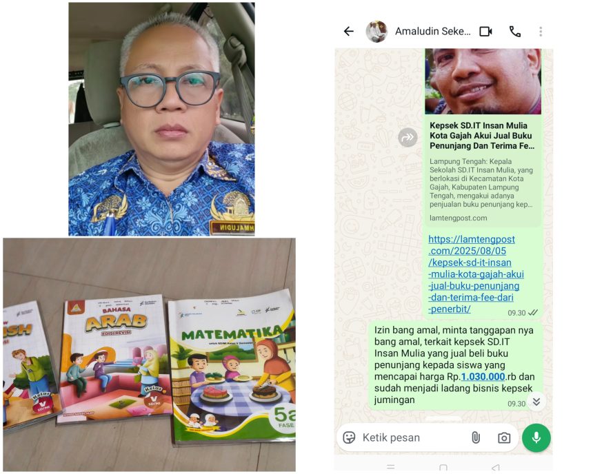 Lampung Tengah Sekretaris Dinas Pendidikan dan Kebudayaan Kabupaten Lampung Tengah, Ahmaludin, diminta memberikan tanggapan atas aduan sejumlah wali murid SD.IT Insan Mulia terkait dugaan praktik jual beli buku penunjang di lingkungan sekolah tersebut.